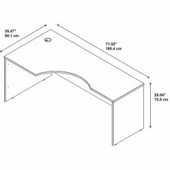 Roomy, comfortable and commercial-grade. The Bush Business Furniture Westfield 72W Left Handed Corner Desk provides a lasting professional appearance with clean lines, an extended modesty panel and heavy-duty construction. A comfortable, curved design invites you to lean in and get to work, while a thermally fused laminate finish fends off scratches and stains. Thick end panels and rugged edge banding ensure continued commercial quality. Spread out with paperwork and devices on the spacious surface while concealing cables in an integrated wire management grommet. Use the Left Handed Desk on its own or attach to matching Westfield products to create L and U Shaped configurations. Add a Hutch, Keyboard Tray or Monitor Arm (all sold separately) to complete your office. Backed by a 10 Year Warranty. American made with U.S. and imported parts.