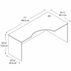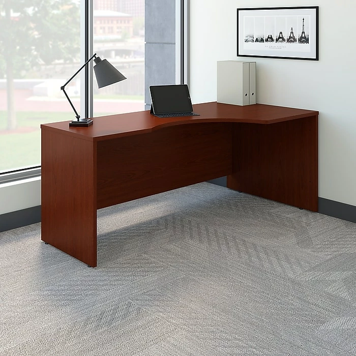 Roomy, comfortable and commercial-grade. The Bush Business Furniture Westfield 72W Right Handed Corner Desk provides a lasting professional appearance with clean lines, an extended modesty panel and heavy-duty construction. A comfortable, curved design invites you to lean in and get to work, while a thermally fused laminate finish fends off scratches and stains. Thick end panels and rugged edge banding ensure continued commercial quality. Spread out with paperwork and devices on the spacious surface while concealing cables in an integrated wire management grommet. Use the Right Handed Desk on its own or attach to matching Westfield products to create L or U Shaped configurations. Add a Hutch, Keyboard Tray or Monitor Arm (all sold separately) to complete your office. Backed by a 10 Year Warranty. American made with U.S. and imported parts.