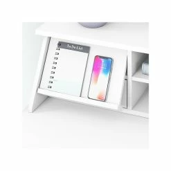- Storage features two shelves to help you organize paperwork and other materials, while desk organizer features small shelves and one accessory shelf which provides a perfect place to keep your phone, tablet, or other devices