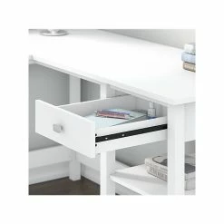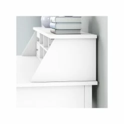 The contemporary Broadview 60″W L-shaped computer desk with desktop organizer allow you to enjoy a practical home office without sacrificing style. Bring a contemporary flair to your home office with a workspace that’s simple, stylish, and functional. The Bush Furniture Broadview 60″W L-shaped computer desk with desktop organizer offers plenty of room to spread out while keeping work materials accessible. The durable 60″W x 60″D corner desk surface easily supports a computer, books, and more with a weight capacity of 200 lbs.. Two shelves and a small box drawer ensure that papers and office supplies are always within reach. The bottom shelf is fixed for stability while the upper shelf can be raised or lowered to accommodate items of various sizes. The desk organizer adds eight cubbies with two drawers that fit in any compartment and a pull-out accessory shelf for your phone or tablet. This corner computer desk with storage set is tested to meet ANSI/SOHO quality standards for safety and performance and is backed by a 1-year warranty.