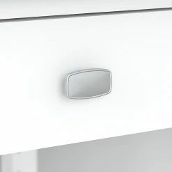 - Contemporary desk features a crisp pure white finish and satin chrome hardware
