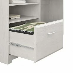 A timeless design with smart features and storage makes the Bush Furniture Cabot 60″W corner desk a great fit for any modern or traditional home office. The desk offers ample storage, technology integration, and plenty of workspace for a stylish addition to your home office. The corner computer desk’s storage features can be placed on whichever side you prefer for a customizable configuration. The unique design saves space in compact areas while still providing a roomy work surface to spread out and be productive. A full-extension file drawer opens on smooth ball bearing slides for an effortless reach to letter-, legal-, and A4-size paperwork while an open cubby shelf works perfectly for storing books and more. Cable management grommet on the desktop lets you easily hide unsightly cords. This home office desk with storage is tested to meet ANSI/BIFMA standards for safety and performance and is backed by the Bush Furniture 1-year manufacturer’s warranty.
