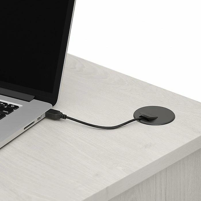 - Includes cable management grommets on desk surface to hide cords