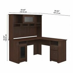 Featuring ample storage and technology integration, the Bush Furniture Cabot L-shaped desk with hutch is perfect for modern and traditional home offices. The L-shaped desk design provides a large work surface and just the right amount of storage to keep you feeling neat and organized. Storage details include an enclosed cabinet with a fluted glass door and a box drawer for supplies. A file drawer opens on smooth, ball bearing slides for an easy reach to letter-, legal-, or A4-size files. A built-in four-port USB hub adds convenience as you’ll keep all of your devices connected. The hutch boasts a matching fluted glass door, two large open compartments, and four work-in-progress areas to help keep your desktop clutter-free.