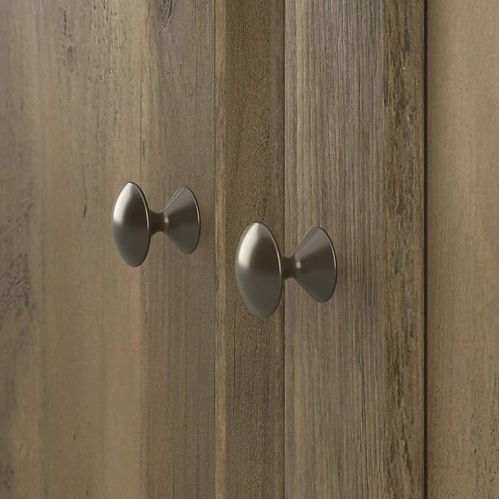 - Tall storage cabinet with doors includes two adjustable shelves and two fixed shelves that accommodate a variety of storage needs