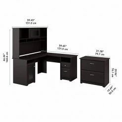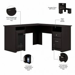 Work in style with the Bush Furniture Cabot L Shaped Desk with Hutch and Lateral File Cabinet. Enjoy a traditional look with smart features. The L Shaped Desk provides a large durable work surface and storage, including an enclosed cabinet with stylish fluted glass door, a box drawer for supplies and a file drawer. A 4-port USB hub adds convenience. Hutch boasts a matching fluted glass door, large open compartments and four work-in-process areas, along with a cable management system to control cords. Lateral File Cabinet has two spacious drawers gliding on smooth full-extension ball bearing slides. Chrome-finished hardware completes the timeless design. Backed by a 1 Year Warranty. See the full collection for coordinating items.