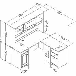 The Bush Furniture Cabot L Shaped Desk with Hutch offers a spacious and efficient workplace for your home or office. Enjoy a traditional look with smart features. The L Shaped Desk provides a large durable work surface and enough storage to keep you feeling neat and organized. Desk storage details include a cabinet with stylish fluted glass door and a box drawer for supplies. A file drawer glides on smooth full-extension ball bearing slides, and a built-in 4-port USB hub adds convenience as you’ll keep all of your devices connected. The Hutch boasts a matching fluted glass door, two large open compartments and four work-in-process areas, along with a cable management system. Chrome-finished hardware completes the timeless design. See the full collection for coordinating items. Backed by a 1 Year Warranty.
