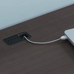- The Harvest Cherry and Espresso Oak Desks contain a handy charging station; the Heather Gray Desk features a full shelf for paperwork and supplies
