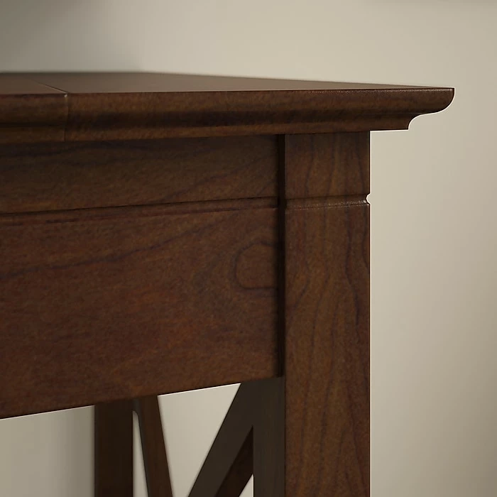 A natural fit for many homes, the Bush Furniture Key West 48W Writing Desk and Lateral File Cabinet create a comfortable and spacious feeling, even in small areas. This Desk has a cottage style motif featuring a unique X accent on the side panels with a reclaimed finish and an attractive post leg design. This accent carries over to the Lateral File Cabinet drawer panels complemented with Aged Bronze handles. Enjoy full-extension ball bearing slides on the two file drawers for easy access to your letter or legal size folders. Both the Lateral File Cabinet and Writing Desk are the same height to create an extended workspace if placed side by side. Meets ANSI/SOHO standards for safety and performance and backed by the Bush Furniture 1 Year Manufacturer’s Warranty. See the full collection for coordinating items available.