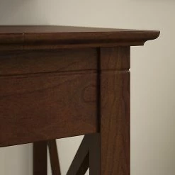 We’ve combined the Bush Furniture Key West 48W Writing Desk and 2 Drawer Mobile File Cabinet for an easy living approach to your home office. This Writing Desk has lots of workspace with a unique X pattern accent for an airy style and attractive post leg design. Full extension ball bearing slides offer easy access to your letter sized files, and a convenient box drawer stores supplies. The rolling cabinet is complete with Aged Bronze hardware and finished on all sides. Locking front casters provide secure placement. The Writing Desk is the ideal height for use as a sofa table and features a finished back so it can be placed anywhere in the room. Let the Key West Collection turn your home or office into an island escape. Construction meets ANSI/SOHO standards for safety and performance and is backed by the Bush Furniture 1 Year Manufacturer’s Warranty.