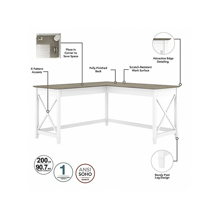 - Durable corner desk offers plenty of room to spread out with materials and supports up to 200 pounds