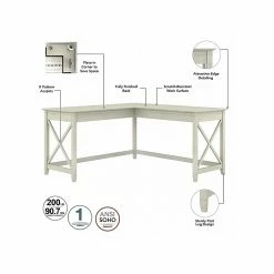 Create a personal workspace with easy going style and plenty of storage for all the materials you need to stay productive. The Bush Furniture Key West 60W L Shaped Desk with Mobile File Cabinet and 5 Shelf Bookcase offers an ideal set up for home and small offices. Save floor space by placing the 60W x 60D Desk in a corner or make use of the fully finished back to take a prominent position in the middle of the room. The 2 drawer filing cabinet fits under the L Desk and has front locking casters for secure placement. The file drawer organizes letter size documents while a box drawer keeps office supplies and utensils close by. The Bookcase features 3 adjustable shelves for flexible storage and display along with 2 fixed shelves for stability. This L shaped computer desk with storage set is tested to meet ANSI/SOHO standards for safety and performance and is backed by a 1 Year Warranty.
