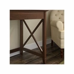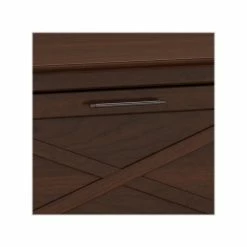 The Bush Furniture Key West 60″W L-shaped desk and two-drawer lateral file cabinet provide a practical home office furniture set with a casual farmhouse style. This set turns any room into a practical home office with an easy-going style. The 60″W x 60″D durable work surface is spacious enough to spread out with a computer, paperwork, and more when taking on your task of the day or just browsing the web. A sturdy post leg design and thoughtful construction with quality materials give the L-shaped computer desk a weight capacity of 200 lbs.. The two-drawer filing cabinet opens on smooth full-extension ball bearing slides for an easy reach to legal- and letter-size documents. Unique X pattern accents on side panels of the L-desk and the cabinet’s file drawers create a relaxed appearance that blends seamlessly with coastal and farmhouse decor. This furniture set is tested to meet ANSI/SOHO quality standards for safety and performance and is backed by a 1-year warranty.