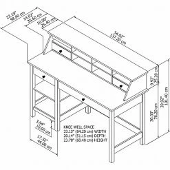 The Bush Furniture Mayfield 54″W computer desk with shelves and desktop organizer give your home office a touch of relaxed modern farmhouse style. Stay on top of your daily tasks with a workspace that suits your casual home. Highlighted by its relaxed modern farmhouse style, the Bush Furniture Mayfield 54″W computer desk with shelves and desktop organizer also include plenty of practical features to keep you feeling productive. Spread out on a durable 54″W x 23″D work surface that supports a computer, books, and more with a weight capacity of 200 lbs. Two shelves and a small box drawer ensure that the papers and office supplies you need are always within reach. A larger drawer with a flip-down front pulls out to provide easy access to your keyboard or laptop. The desk organizer adds eight cubbies with two pencil drawers that fit in any space and a pull-out accessory shelf for your phone or tablet. This farmhouse desk with storage is tested to meet ANSI/SOHO standards for safety and performance and is backed by a 1-year warranty.