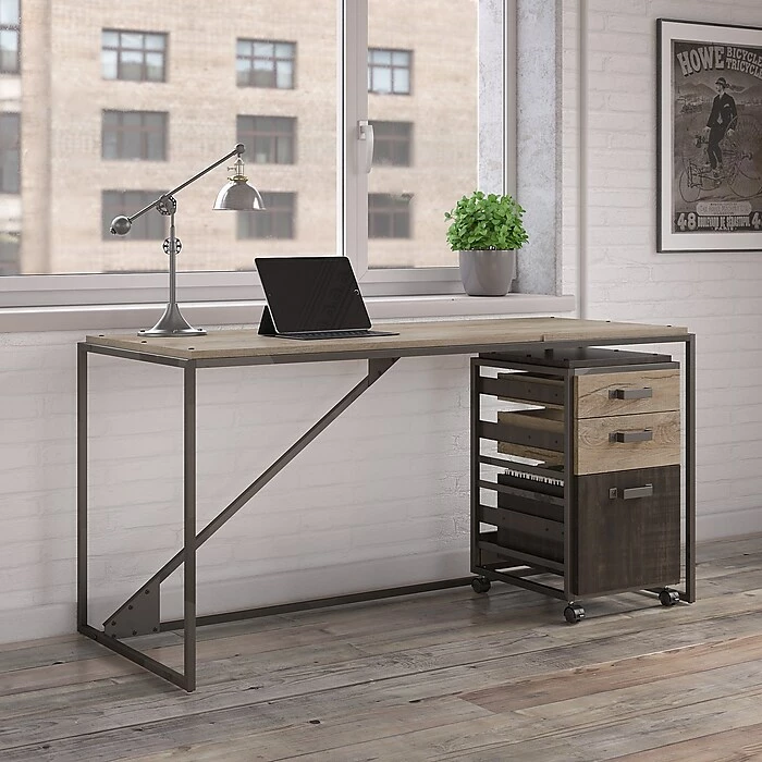 - Bundle includes: 62W Industrial Desk, 3 Drawer Mobile File Cabinet