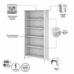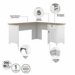 Create a home office space that’s comfortable, functional, and beautiful with the Bush Furniture Salinas L-shaped desk with file cabinet and five-shelf bookcase. You’ll love all the room you have to multitask on the L-shaped desk surface designed to save space in your home with a variety of placement options, including in the corner. A box drawer stores small office supplies while a storage cabinet includes an adjustable shelf for larger items. The bookcase’s three adjustable shelves make it easy to display books, photos, and more while two fixed shelves provide stability. For your legal- and letter-size documents, the lateral file cabinet contains spacious drawers that open on full-extension ball bearing slides. The corner desk with bookshelf and file cabinet office furniture set is tested to meet ANSI/SOHO quality standards for safety and performance.