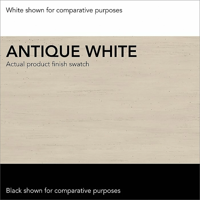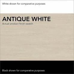 - Farmhouse-style bundle is made of engineered wood in an antique white laminate finish