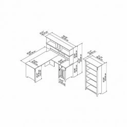 Featuring a comfortable design and plenty of storage capacity, the Bush Furniture Salinas 60W L Shaped Desk with Hutch and 5 Shelf Bookcase offers an ideal home office solution for those who value both style and function. Spread out and multitask on the L Shaped surface, designed to save space by fitting into a corner. Store writing utensils and small office supplies in the convenient box drawer and keep larger items in a storage cabinet with an adjustable shelf. The 60W Hutch attaches to either side of the corner desk and features two large open cubby areas as well as a pair of smaller spaces for storage and display. A pair of fixed shelves give the Bookcase stability while three adjustable shelves allow you to store items of various sizes. This cottage style furniture set is tested to meet ANSI/SOHO quality standards for safety and performance and is backed by a 1 year warranty.