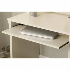 Feel comfortable in your home office with the casual styling of the Bush Furniture Salinas collection. The versatile features of the Mission Desk with Hutch, Lateral File Cabinet and 5 Shelf Bookcase help you feel organized and keep your home looking great. Spread out on the Desk surface while organizing cords in the cable management system. Store a keyboard or laptop on the pull-out shelf, and stash supplies in a box drawer and cabinet. Display photos, books and more in the open spaces of the Hutch and in the 5 Shelf Bookcase, while you file your worries away in the 2 drawer Cabinet. Attractive wood details, vertical accents, curved base rails and tapered legs create a casual look fit for a cottage, family home or apartment. Metal drop pull hardware complements the Antique White finish, which features a distressed touch to add a country feel to your space. Backed by a 1 Year Warranty.