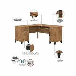 | Included With Bundle | Bundle includes: 60″W L-shaped desk with storage, 60″W desk hutch |
