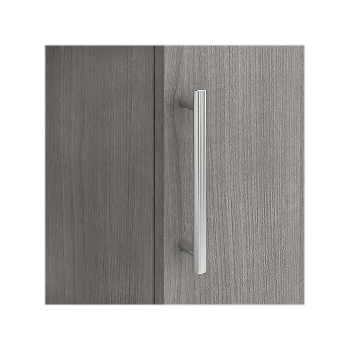 - Vertical storage cabinet contains one adjustable shelf for storing items of various sizes