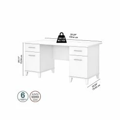Make the best use of your workspace with the Bush Furniture Somerset 60″W office desk. A perfect choice for your home office, the extended surface provides plenty of room to spread out and features built-in wire management grommets to keep cords in order. Stay organized with two box drawers to house miscellaneous office supplies and two file drawers with smooth ball bearing slides for storing letter-sized documents. The desk in transitional styling offers tapered leg accents, an elegant finish, and contemporary metal hardware for an alluring appearance. This computer desk with drawers is tested to meet ANSI/SOHO quality standards for safety and performance and is backed by the Bush Furniture 6-year manufacturer limited warranty. See the full Somerset collection for coordinating items to complete your personal workspace. American-made with US and imported parts.