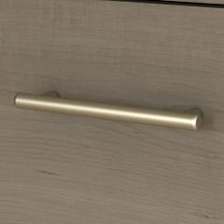 - Transitional styling includes tapered leg accents, an elegant finish and contemporary metal hardware