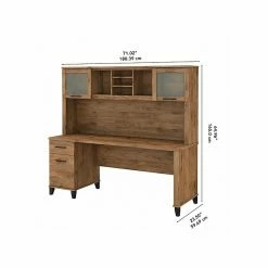 A spacious work surface and plenty of storage capacity make the Bush Furniture Somerset 72″ office desk with drawers and hutch a perfect choice for your home office. Spread out with a computer and paperwork while multitasking on an expansive desktop that includes a wire management grommet to keep cords and cables in order. The desk’s file drawer opens on smooth full-extension ball bearing slides for easy access to legal- and letter-size documents, while a box drawer keeps the office supplies and utensils you need close by. The hutch attaches to the desktop and adds a pair of frosted glass doors for concealed storage in addition to open cubby spaces with shelves for books, decorations, and more. This home office desk with drawers and hutch set is tested to meet ANSI/SOHO quality standards for safety and performance and is backed by the Bush Furniture 6-year manufacturer’s warranty.