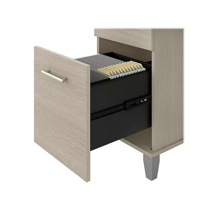 - File drawer opens on full-extension ball bearing slides for easy access to legal- and letter-size documents, box drawer provides storage for office supplies and utensils