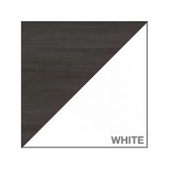 - Comes in storm gray and white and made of laminate over engineered wood