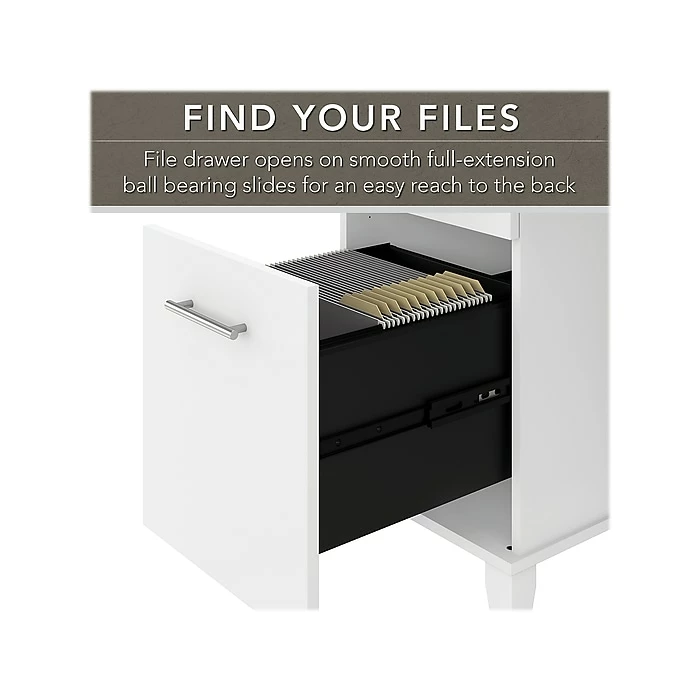 - File drawer opens on full-extension ball bearing slides for easy access to legal- and letter-size documents