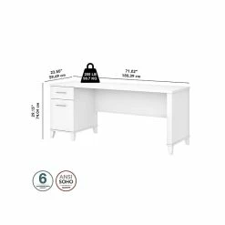 - Spacious 71″W work surface offers plenty of room to spread out with a computer and paperwork