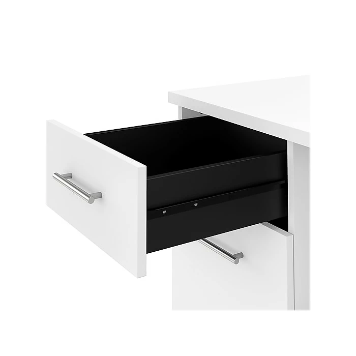 An expansive work surface and built-in storage make the Bush Furniture Somerset office desk with drawers a perfect choice for your home office. The spacious desktop offers plenty of room to spread out with a computer and paperwork and includes a wire management grommet to keep cords and cables secure and out of sight. The desk’s file drawer opens on full-extension ball bearing slides for easy access to legal- and letter-size documents, while a box drawer keeps the office supplies and utensils you need close by. A finished back side allows the desk to look great no matter where it’s positioned in the room. The office desk with drawers meets or exceeds ANSI/SOHO standards for safety and performance and is backed by a 6-year manufacturer limited warranty.