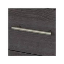 - Laminated over composite wood in a storm gray finish