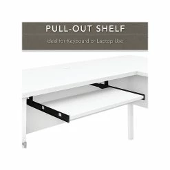 - Desk includes a pull-out keyboard/laptop tray