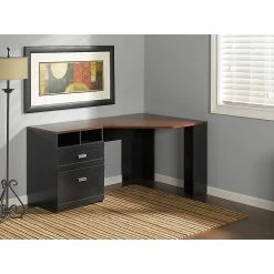The Bush Furniture Wheaton Reversible Corner Desk offers a compact and flexible workspace solution. This reversible desk features a pedestal that can be configured for both left- or right-handed preferences with efficient filing storage and open cubby shelves for books or supplies. The small footprint combined with corner flexibility and casual stylings make this a perfect fit for the home or any office where space is at a premium. Backed by the Bush Furniture 1-year warranty.
