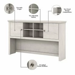- Hutch features four open cubbies with two adjustable shelves for flexible storage and display capacity