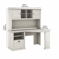- Bundle includes: 60″W corner desk with storage, 60″W desk hutch
