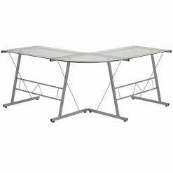 If space is not an issue for you, you should definitely invest in an l-shaped desk. The space that you have on an l-shaped unit is priceless. You will have ample space to accommodate your monitor, laptop, books, office supplies and other necessities. This contemporary computer desk has a clear, tempered glass top that sits atop an open designer frame with attractive bracing. You can place on either corner of a room or come off the wall to add an open concept feel, where you can access the desk from either side. Modernize your work area with a glass computer table that will not make your space feel closed in.