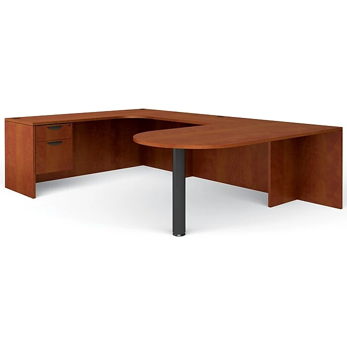 Give a touch of sophistication to your office with this Offices to Go superior laminate bundle consisting of a D island, flush bridge, credenza with corner extension and file pedestal. Made with commercial grade American dark cherry laminate for durability in frequent use conditions, this 114by 71 by 29.5-inches laminate bundle offers you enough space to work on papers, keep a laptop, stack documents and store files. It comes with a 3-millimeter PVC matching edge and leveling guides for ease of use.