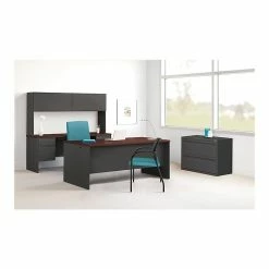 Store office accessories, folders, and other items easily in this double-pedestal desk. Featuring a waterfall edge, this workstation makes typing more comfortable, while the steel construction enhances durability and allows for frequent relocation. Each pedestal features a box drawer for supplies and a file drawer for paperwork, so you can access important reports, contracts, and other documents quickly. This HON 38000 Series double-pedestal desk has a multi-ply laminate surface, making cleanup easy and preventing scratches, dings and other damage.
