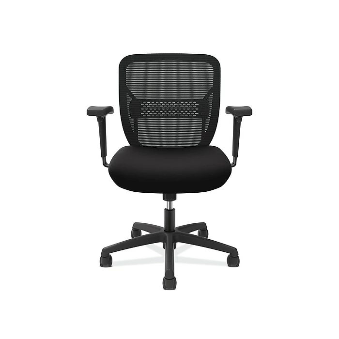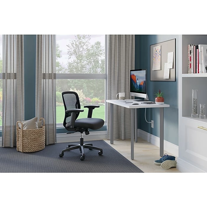 Stay as productive in your own digs as you do in the office with this great table desk and task chair setup that lets you get down to business in no time. Keeping things nice and easy, HON Coze table desk components offer simple and quick assembly to give you clean, contemporary style plus plenty of function in a matter of minutes. The look is modern and fresh, sized perfectly for compact spaces. And when it’s time to launch into work mode, look cool while staying cool in HON’s Gateway task chair. The stretchy support of its breathable mesh back offers complete comfort for your most challenging assignments or when you really need to think things through. Height-adjustable arms and built-in lumbar adjustment ensure a perfect fit and feel that will make you forget all about the daily grind. The laminate and edgeband are designer white. The chair mesh and fabric are black.