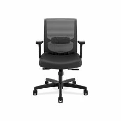 Stay as productive in your own digs as you do in the office with this great table desk and task chair setup that lets you get down to business in no time. Keeping things nice and easy, the HON Coze table desk components offer simple and quick assembly to give you clean, contemporary style plus plenty of function in a matter of minutes. The look is modern and fresh, sized perfectly for compact spaces. And when it’s time to tackle the workday, HON’s Convergence task chair makes sure you can cop a squat in complete comfort. Robust ergonomic features let you fine-tune support just where you need it, while a breathable mesh back keeps you cool and collected even when the work gets heated. Laminate and edgeband are designer white. Chair mesh and vinyl are black.