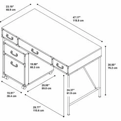 Capture a sense of heritage with the kathy ireland® Home by Bush Furniture Ironworks 48W Writing Desk and 2 Drawer Mobile Pedestal. Desk features a durable laminate work surface with exposed structural steel legs, Aged Bronze accents and metal pulls. Functional center drawer with a drop down front is ideal for keyboard or laptop storage and two convenient box drawers for supplies. Mobile Pedestal features casters for placement flexibility or simply store efficiently beneath the Desk. Locking casters offer secure placement for filing and safety. Full-extension ball bearing slides on file drawer accept letter and legal-sized files. Construction meets ANSI/SOHO furniture standards for strength and durability for affordable home furnishings backed by a 3 Year Manufacturer’s Warranty.