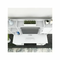 - Made of laminate over engineered wood and comes in pure white finish