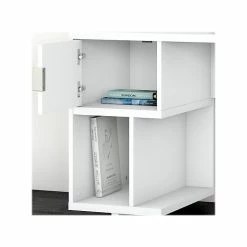 The stylish and progressive Kathy Ireland Home by Bush Furniture Madison Avenue 59″ computer desk with hutch offers a workspace with plenty of storage and modern flair. Perfect for home offices, the 59″W x 24″D desktop provides more than enough room to spread out with a computer, paperwork, and more. The asymmetrical design includes a built-in file drawer and storage cabinet to ensure that paperwork and supplies are always within reach. Vertical and horizontal cubby spaces keep materials organized so you can access them without breaking focus. The hutch’s cabinet contains one adjustable shelf to conceal items of various sizes. A three section top shelf provides a place to store books or personalize your work area with pictures and decorations. This home office desk with storage meets or exceeds ANSI/SOHO standards for safety and performance and is backed by a 3-year manufacturer limited warranty.