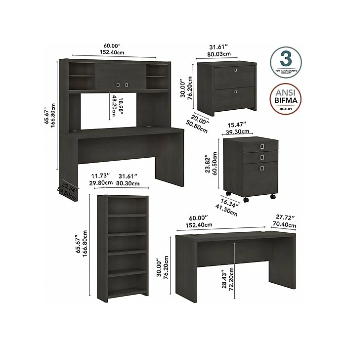 | Included With Bundle | Credenza desk with hutch, 5-shelf bookcase, 2-drawer lateral file cabinet, 3-drawer mobile file cabinet |