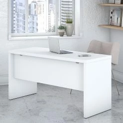- Credenza desk works perfectly as a standalone unit featuring a finished back for placement anywhere in the room