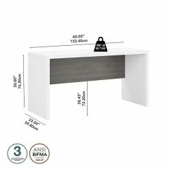 - Accepts the 60″W hutch (sold separately) to create a coordinated office set with convenient storage