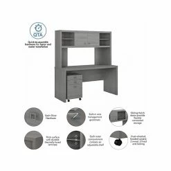 - Bundle includes: 60″W credenza desk, 60″W hutch, three-drawer mobile file cabinet